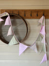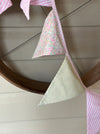 Coordinated patterns of Liberty fabric, Gingham & Linen all tie together to make these beautiful strands of bunting.